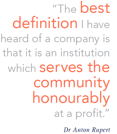 Remgro’s value system incorporates the guidelines for doing business successfully drawn up by its founder, Dr Rupert, nearly 60 years ago. These values include the following: