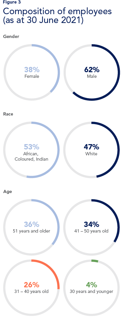 (2020: 179 employees). Refer to Figure 3 where more detail regarding the composition of our employees by race, gender and age is illustrated.
