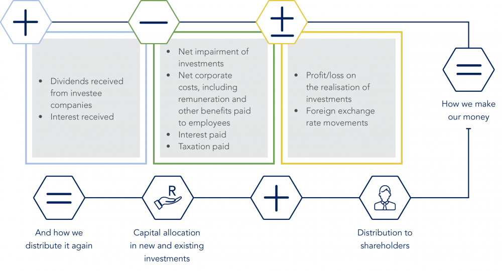 | Capital is expensive and not infinite. As we deal with an uncertain future, exacerbated by the Covid-19 pandemic, and inevitably base capital allocation models on certain assumptions about the future, we need a margin of safety in our investment decisions. We need to be disciplined in our allocation of capital and, if we are wrong, we should act quickly and decisively. A large part of Remgro’s success is attributable to being able to maintain a good balance of young growth companies, network assets and more established cash-generating companies to ensure superior returns to shareholders by way of sustainable dividends and capital growth. |