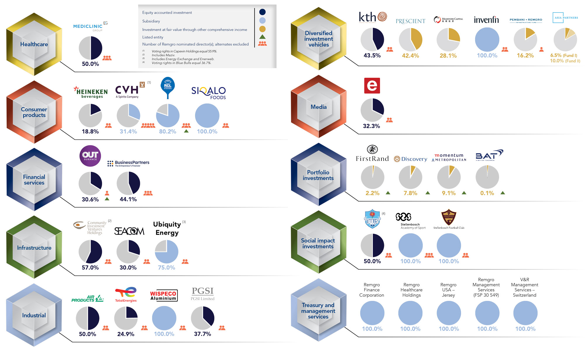 Remgro’s interests consist mainly of investments in the healthcare, consumer products, financial services, infrastructure, industrial and media industries.
